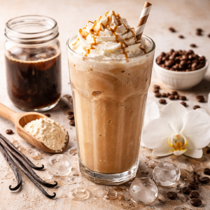 Vanilla Protein Coffee Shake: café gelado com textura cremosa e proteína para o dia a dia